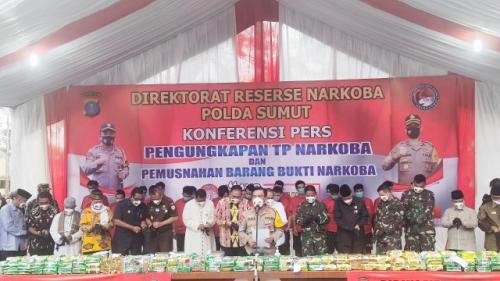 Rabu, 14-04-2021 - 19:59:09 WIB METROMANDIRI.COM ,MEDAN - Pada hari Rabu tanggal 14 April 2021 sekira pukul 16.00 WIB, Kapolda Sumut melaksanakan konferensi pers pengungkapan Tindak Pidana Narkoba dari tanggal 17 Februari 2021 s/d 18 Maret 2021, dan pemusnahan barang bukti Narkoba yang merupakan hasil pengungkapan Bulan Desember 2020 s/d Februari 2021.Turut hadir Gubernur...(read more)