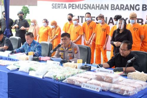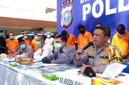Selasa, 12-10-2021 - 02:06:17 WIB METROMANDIRI.COM PEKANBARU - Selama periode September 2021, Polda Riau dan jajaran berhasil mengungkap setidaknya 10 kasus tindak pidana narkoba dengan menangkap 22 orang pelaku serta barang bukti 189,31 kg sabu dan 889 butir ekstasi.Kapolda Riau Irjen Agung Setia Imam Effendi menggelar konferensi pers pada Senin (11/10/2021) dihalaman Mapolda...(read more)