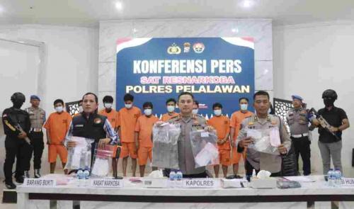 Selasa, 08-12-2020 - 18:45:11 WIB Metro mandiri,Pekanbaru - “Hanya dalam kurun waktu 9 hari saja (28 Nopember hingga 6 Desember 2020), Direktorat Narkoba Polda Riau, Polresta Pekanbaru dan Polres Bengkalis berhasil menggulung sindikat narkoba diempat lokasi berbeda dengan membekuk 11 orang pelaku dan 2 orang dinyatakan DPO”, terang Kapolda Riau Irjen Agung Setia Imam...(read more)