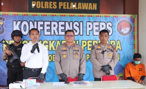 Sabtu, 13-06-2020 - 10:30:26 WIB Metro mandiri, Pelalawan - Dua tersangka tindak pidana penyalahgunaan narkotika jenis shabu di Dusun 4 Toro Jaya Desa Lubuk Kembang Bunga, Kecamatan Ukui Kabupaten Pelalawan, pada Kamis (11/6/2020) sekira pukul 15.20 Wib berhasil diamankan oleh pihak Kepolisian Polres Pelalawan.Kedua tersangka yaitu DA (28), warga Dusun 4 Toro Jaya Desa Lubuk...(read more)