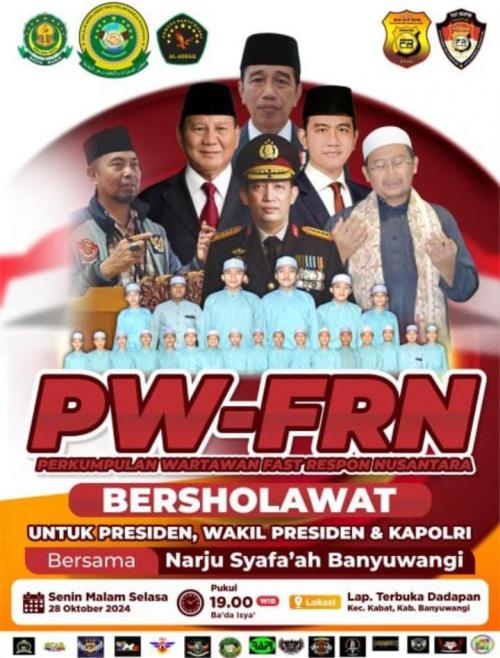 Senin, 14-10-2024 - 22:03:32 WIB METROMANDIRI.COM JAKARTA – Perkumpulan Wartawan Fast Respon Nusantara (PW FRN), yang dipimpin oleh Agus Flores, siap menggelar acara akbar Gebyar Sholawat pada Senin malam, 28 Oktober 2024. Bertempat di Lapangan Dadapan, Desa Dadapan, Kecamatan Kabat, Banyuwangi, acara ini akan dihadiri oleh lebih dari 10 ribu jamaah dari seluruh wilayah...(read more)