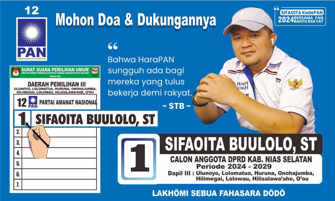 Beliau siap Terjun sebagai Caleg DPRD Kabupaten Nias selatan periode 2024-2029. Beliau juga dikenal akrab di kalangan Masyarakat, keluarga dan saudara, beliau merupakan sosok yang berjiwa besar, Membantu, dan mengayomi.