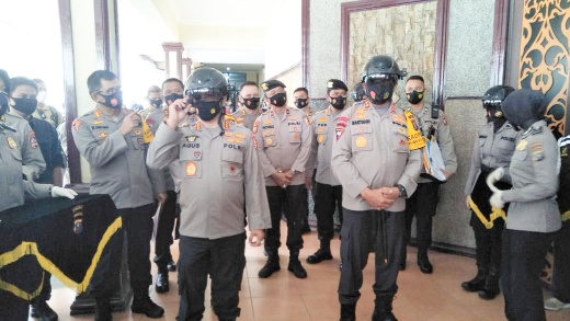 Didampingi Kapolda Sumut Irjen Pol Martuani Sormin, Kabaharkam langsung menggunakan helm smart mengecek suhu tubuh setiap personil yang berada di Mapolda Sumut.