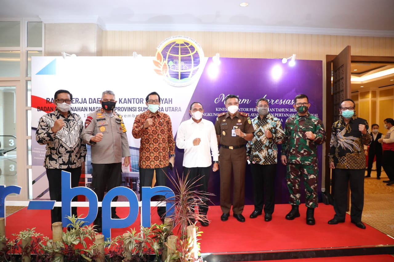 Kakanwil BPN Provinsi Sumut Dadang Suhendi menyampaikan apresiasi kepada Gubernur dan unsur Forkopimda dalam mensukseskan program strategis nasional Kementerian ATR/BPN, menyelesaikan konflik-konflik agraria di Sumatera Utara.