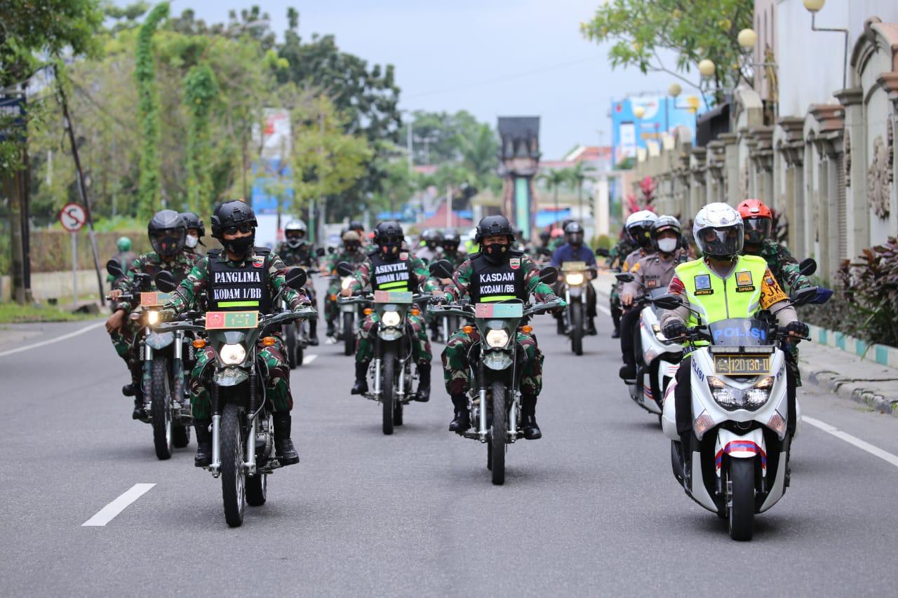 Metro Mandiri,Medan - Polda Sumatera Utara , Kodam I/BB dan Pemko Medan laksanakan patroli gabungan skala besar dalam rangka memantau situasi kamtibmas menjelang pemilihan kepala daerah tahun 2020 di Sumut bertempat di depan Lapangan Benteng. Selasa (08/12/20) pukul 09.30 Wib