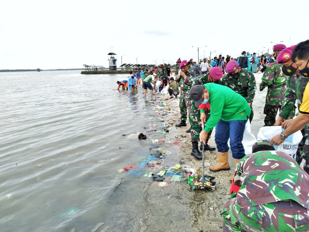 Kebetulan ketika aksi bersih-bersih dilakukan, sampah tampak berserakan di seputaran pantai yang berpasir putih tersebut, dengan kebersamaan dan kerjasama yang baik sampah yang berserakan dapat diatasi, setelah terkumpul banyak sampah selanjutnya diangkut menggunakan truk untuk dibuang ke tempat penampungan sampah.