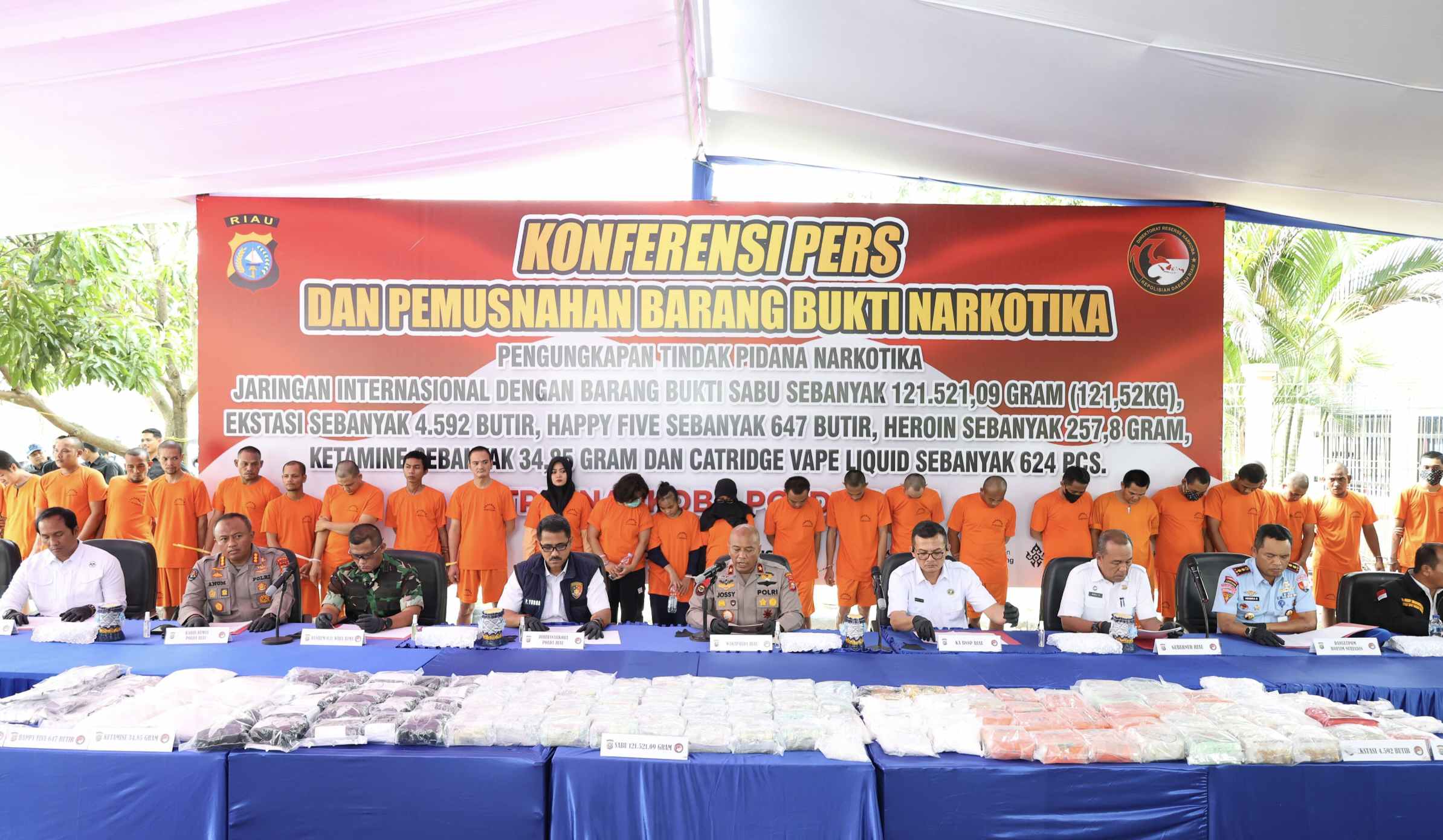 "Dalam tempo tiga bulan terakhir kami Polda Riau mengungkap kasus jaringan internasional di mana perannya bermacam-macam, yaitu ada sebagai kurir, pengendali, dan pengedar yang langsung menerima dan mengambil barang dari kurir laut melalui pelabuhan tikus yaitu Bengkalis, Dumai, dan Kepulauan Riau," jelas Direktur Reserse Narkoba Polda Riau Kombes Putu Yudha Prawira, Rabu (27/8/2025).