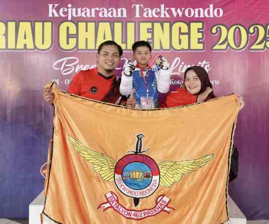 METRO MANDIRI.COM PEKANBARU - Kembali Waldan Abdullah Rafif mengukir Prestasi di ajang olahraga taekwondo, atlit yang dibawah binaan Dojang Taekwondo PulangGeni Kopasgat ini berhasil meraih juara 1 di Kejuaraan Taekwondo Riau Challenge 2025.