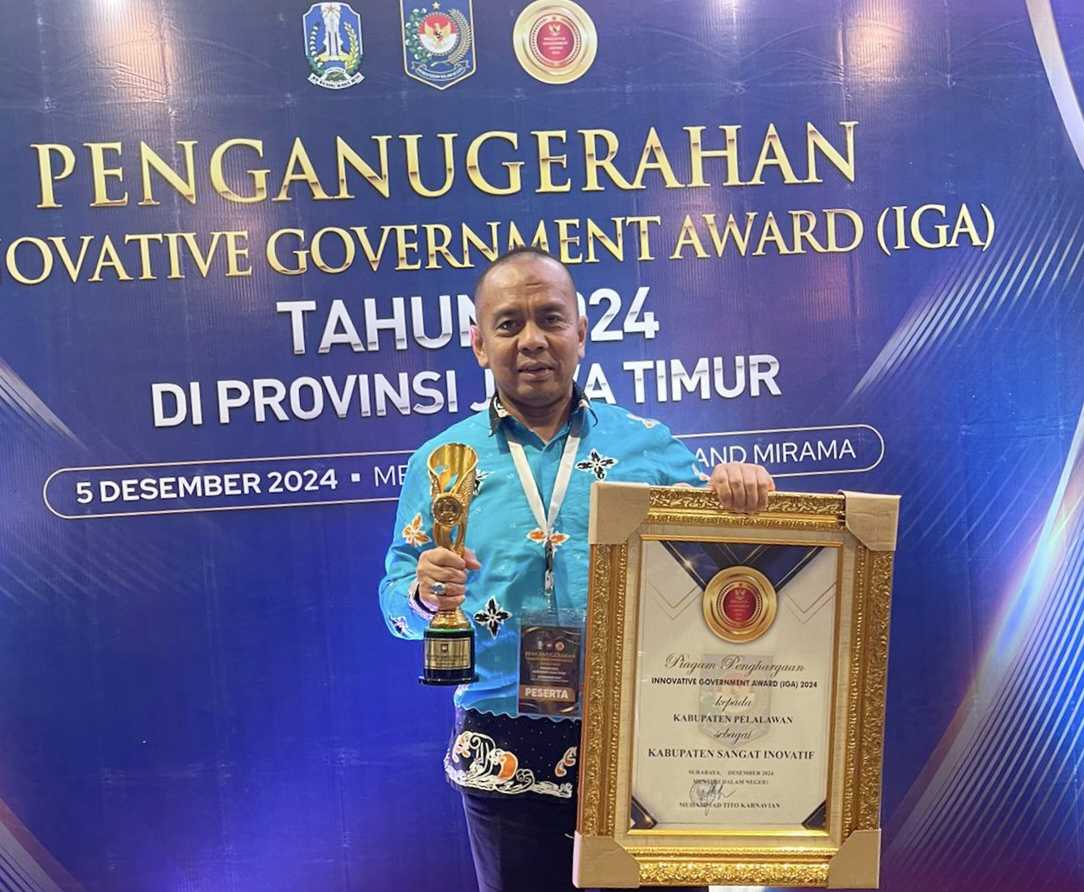 METROMANDIRI.COM SURABAYA - Pemerintah Daerah Kabupaten Pelalawan dibawah Kepemimpinan H.Zukri kembali meraih penghargaan bergengsi dalam ajang Innovative Government Awards (IGA) 2024, yang dianugerahi oleh Kementerian Dalam Negeri, bertempat di Hotel Mercure Surabaya Grand Mirama, Kamis (5/12/2024).