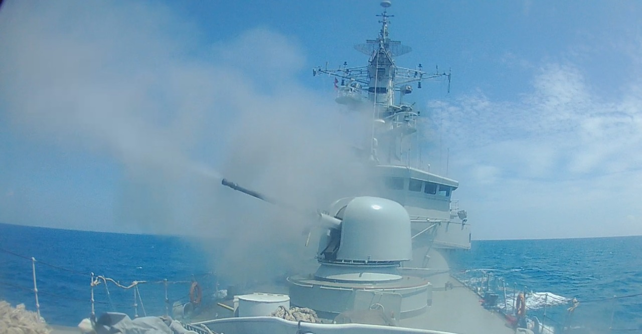 Pada pelaksanaan kegiatan itu, KRI melaksanakan latihan penembakan meriam 76 sebanyak 40 butir amunisi dengan sasaran Pulau Gundul.