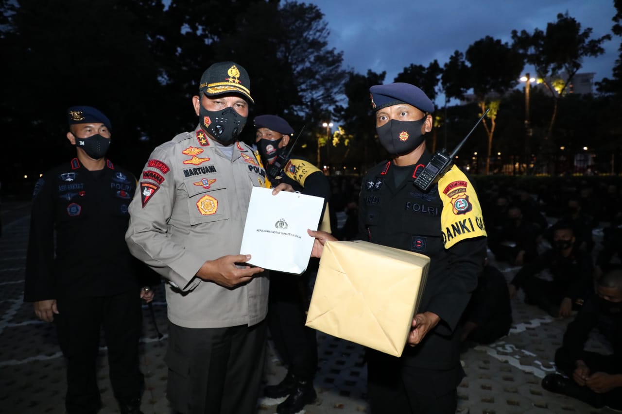 Irjen Martuani menyampaikan personil yang BKO harus bisa menjaga kesehatan dan rajin untuk berolahraga dan meminta kepada Karo Ops Polda Sumut agar menyiapkan Probiotik, untuk menjaga imunitas tubuh para personel Polda Sumut.