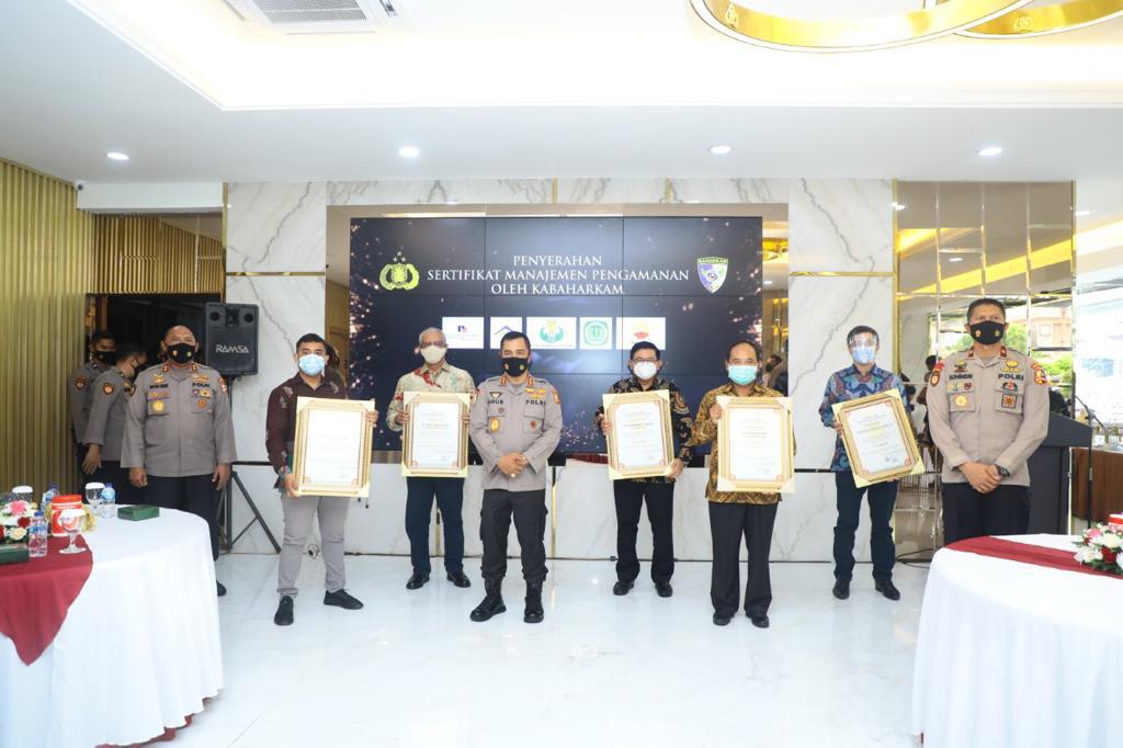 Metro mandiri,Jakarta - Kepala Badan Pemelihara Keamanan (Kabaharkam) Polri, Komjen Pol Agus Andrianto, menyerahkan sertifikat Sistem Manajemen Pengamanan (SMP) Gold Reward kepada lima perusahaan objek vital nasional (Obvitnas), bertempat di Jakarta, Selasa, 29 Desember 2020.
