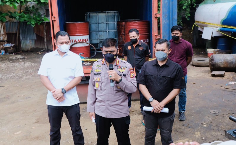 "Dioplos (dicampur) di gudang ini, dengan komposisi tertentu sehingga menghasilkan mirip seperti solar non subsidi," terang Kabid Humas Polda Riau Kombes Sunarto dalam jumpa persnya bersama Direktur Reskrimsus Kombes Ferry Irawan dan didampingi Kasubdit IV AKBP Dhovan Oktovianto, Kamis (7/4/2022) siang.